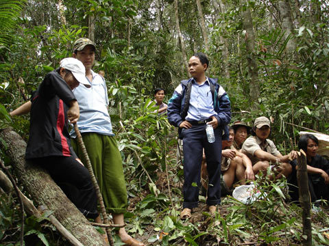 | Lực lượng công an và kiểm lâm phối hợp điều tra một vụ săn bắn động vật rừng quí hiêm tại rừng Trà My. |