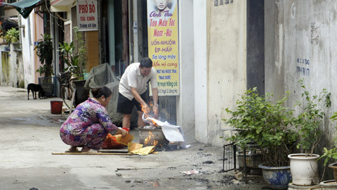 Nhà hóa vàng ít thì một người đốt, có nhà cả gia đình cùng đốt mới hết. Có cụ già sau khi hóa vàng xong ngồi thở…lấy sức vì hóa nhiều quá.