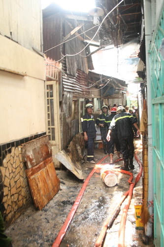 Ba xe chữa cháy và gần 30 cán bộ chiến sĩ của Phòng Cảnh sát PCCC Bình Thạnh rất vất vả vượt qua nhiều mái nhà để không chế ngọn lửa. Sau 30 phút, đám cháy được dập tắt. Toàn bộ căn gác rộng 12m2 bị cháy rụi.