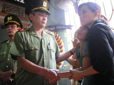 | Thiếu tướng Nguyễn Minh Dũng – Phó Tổng cục trưởng Tổng xây dựng lực lượng - Bộ Công an (phía Nam) chia sẻ nỗi đau với gia đình Lê Thanh Tâm |