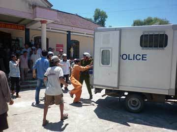Ngay sau khi 2 đối tượng bị bắt giữ, hàng trăm người dân đã bao vây trụ sở UBND xã và yêu cầu công an giao 2 đối tượng trên để “xử”.