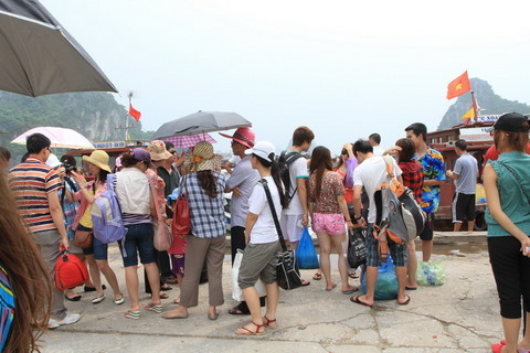 | Hành khách chờ ở bến Vân Đồn để đi Quan Lạn |