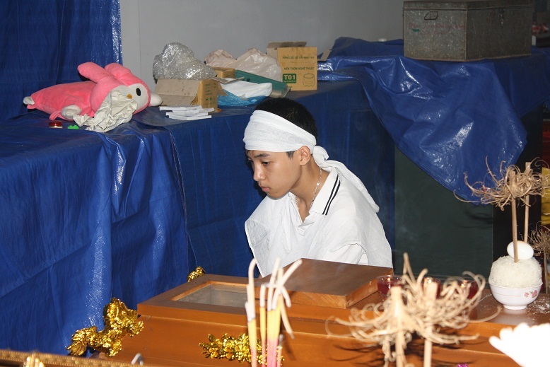 23 giờ, chỉ còn lại anh em, họ hàng gia đình vợ chồng anh Ngọc ngồi túc trực bên linh cữu.