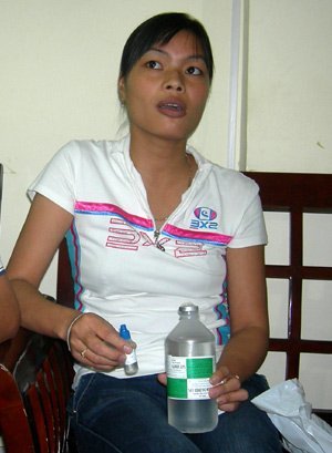 Khi mổ, chị phải nộp 2,6 triệu đồng tiền phẫu thuật, sau đó thì được truyền 3 chai dịch, chiếu đèn (chiếu tia hồng ngoại), cho thêm 5 viên thuốc về uống (viên nhộng, loại bị bóc hết vỏ, không biết là thuốc gì – với giá khoảng 30.000 đồng một viên). Tổng cộng tiền thuốc, chiếu đèn, truyền dịch này hết 1.540.000 đồng.
