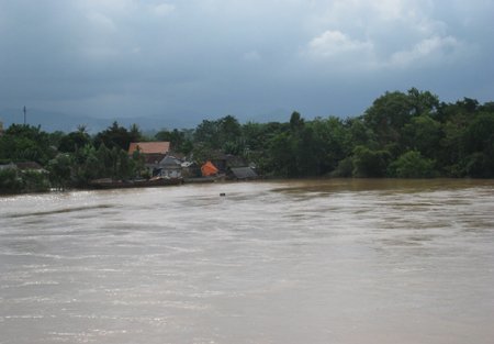 nước sông Lam dâng cao, gây ngập và hư hỏng.