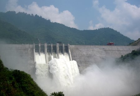Trước tình hình mưa lớn, lúc 16h ngày 20/9, hồ thủy điện Bản Vẽ (Nghệ An) đã xả