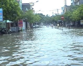| TP Thái Bình ngập trong nước (Ảnh: Báo Thái Bình) |