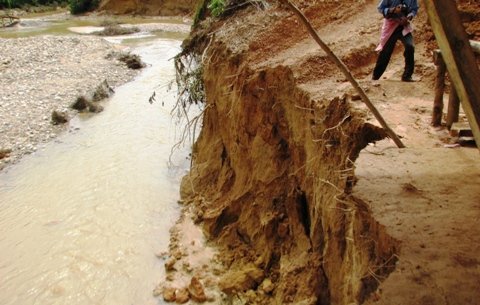 Khe vàng xuất hiện những chiếc hố sâu hoắm như vừa bị trúng bom.