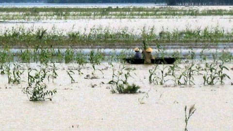 ![]() Nông dân các huyện Nam Đàn, Anh Sơn, Hưng Nguyên (Nghệ An) căng mình thu hoạch lúa, ngô trong tình trạng nước ngập trắng đồng. (Ảnh: Q. Huy.) |