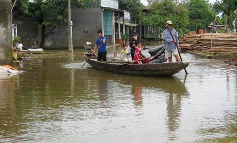 Tại cơ sở bảo trợ và hướng nghiệp trẻ em Xuân Phú trên trục đường Lê Viết Lượng cũng bị nước lũ bủa vây gây ngập úng trong khuôn viên. Mọi sinh hoạt đi lại của người dân chủ yếu là đi bộ, xe máy được cầu cứu bằng chiếc thuyền nhỏ.