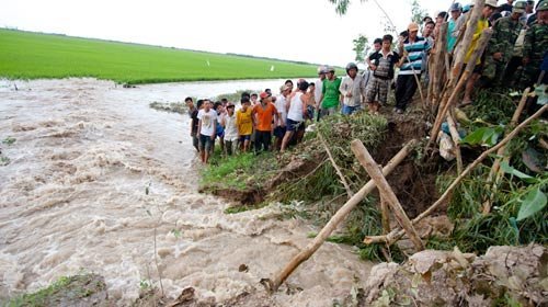 đê tại Đồng bằng sông Cửu Long bị vỡ.