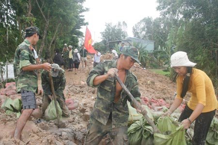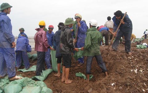 Để ứng phó với bão tràn vào và nước biển dâng cao, theo chỉ đạo của UBND tỉnh Nam Định, trong ngày hôm qua và ngày hôm nay huyện Nghĩa Hưng đã tập trung lực lượng để tiến hành quai đê đề phòng khi bão tới.