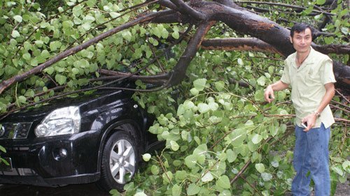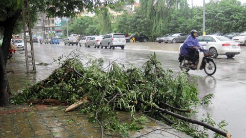 | Cành gẫy vì gió to và mưa trên phố Hồ Đắc Di - Hà Nội |
