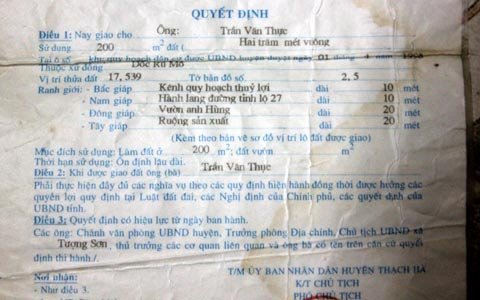 Đáng chú ý là việc nâng cấp tỉnh lộ 27 đã được UBND tỉnh Hà Tĩnh có văn bản từ tháng 3/2009 để lập dự án. Thế nhưng, đến tháng 1/2010, UBND huyện Thạch Hà lại tiến hành cấp bìa đỏ cho 1 hộ dân ở khu vực làm đường đã được quy hoạch đất ở trước đó.