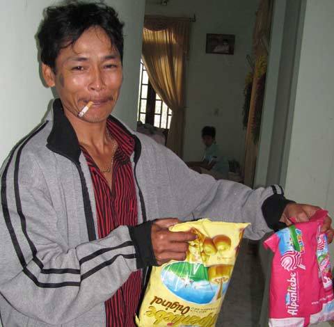 Anh Dành cùng mọi người đã vớt được hàng tạ bánh kẹo, bột ngọt... lên mang về chia cho bà con làng xóm.