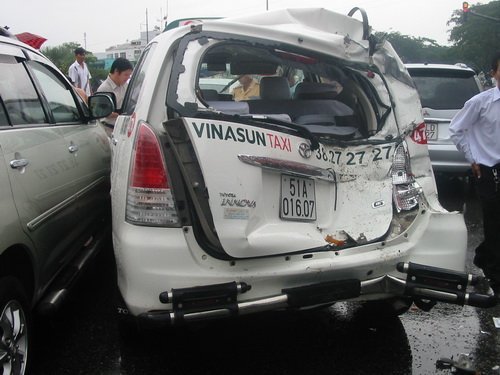 | Xe taxi và nhiều xe bị đụng dính chum |