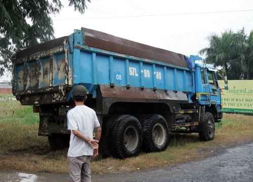 | Xe ben chỉ dừng lại khi đi vào bãi đất trống sát lề |