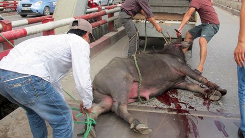 Con trâu bị giết ngay sau đó, trước khi được đưa lên xe tải, giải phóng ách tắc giao thông cho cầu Chương Dương.