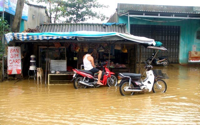 thị trấn Kiến Giang …vẫn còn bị ngập, việc đi lại của người dân vẫn còn gặp