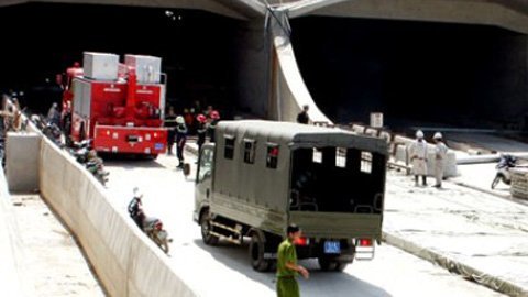 | Lực lượng chữa cháy có mặt trong một lần xảy ra vụ cháy tại đường dẫn hầm Thủ Thiêm. |
