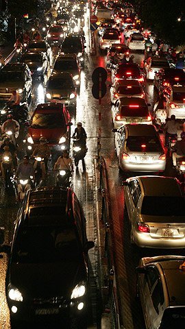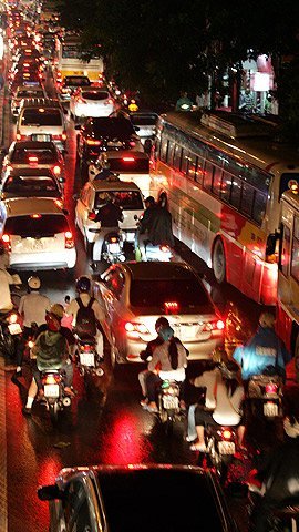 | Tắc đường không kể thời gian - Ảnh Long Anh |