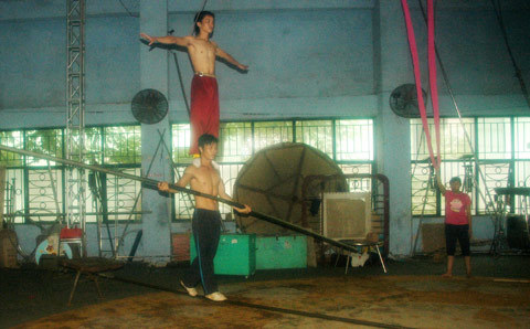 | Cũng như xiếc thú, xiếc người cũng tiềm ẩn các nguy cơ không an toàn rất cao. Nhiều người đã gặp tai nạn khi tập tiết mục "Dây căng cao" này, bởi cây sào có thể rơi ra, bật lên mặt, hoặc bị ngã khi mất thăng bằng, vv... (Ảnh: N.A) |