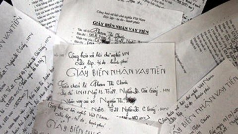 | Giấy vay tiền của các con nợ trong vụ vỡ nợ ở Cầu Giấy (Ảnh: VTC News) |