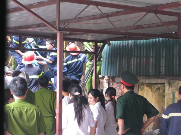 hiện trường. Cô giáo chủ nhiệm đã vào tận bên trong cùng lực lượng cứu hộ