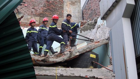 Hình ảnh đưa nạn nhân ra khỏi đống đổ nátHình ảnh kinh hoàng vụ sập nhà tại Hà Nội