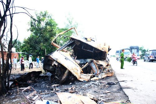 Trong số các nạn nhân tử vong có cả tài xế của 2 xe. Hiện các thi thể chưa được nhận dạng sẽ chuyển về TP.HCM xét nghiệm AND để truy tìm nhân thân.