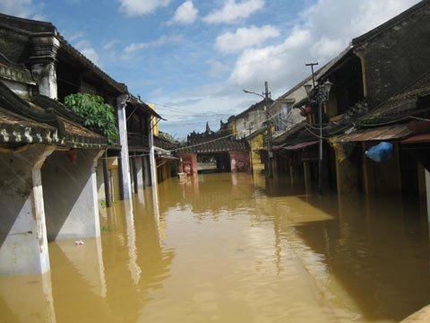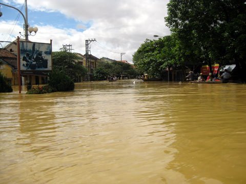 Trong khi đó tại đô thị cổ Hội An (Quảng Nam), nước lũ đã làm ngập hàng trăm ngôi nhà cổ nằm dọc hai bên bờ sông Hoài từ 1 – 2m. Các tuyến đường Hai Bà Trưng, Trần Hưng Đạo, Nguyễn Thị Minh Khai… cũng bị ngập sâu.