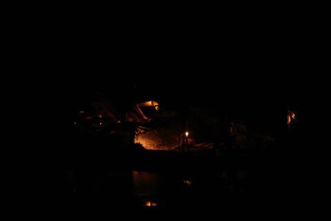 Đêm ngày 10/11/2011, chúng tôi đã được tận mắt chứng kiến những khai trường vàng tặc thắp điện thâu đêm khai thác vàng trái phép ở một loạt các xã ven sông.