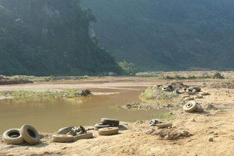 | Một bãi khai thác cát và tận thu vàng trên sông Bắc Giang - địa điểm chảy qua xã Lạng San, huyện Na Rỳ - Ảnh: K.Trung |