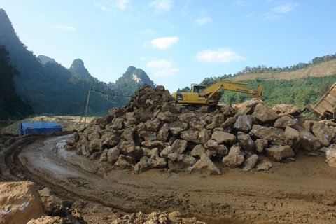 Buổi sáng ngày hôm sau khi quay trở lại, chúng tôi được biết khai trường quy mô, náo nhiệt tại xã Lương Thượng đêm qua thuộc bản Nà Làng, và là dự án được cấp cho DN Hùng Dũng Hamico – một DN lớn chuyên về khai khoáng, chế biến tre, gỗ của Bắc Kạn.