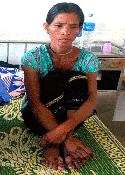 | Một người dân ở xã Ba Điền, huyện ba Tơ mắc “bệnh lạ” đang được điều trị tại BV Quảng Ngãi (Ảnh: M.Thu) |