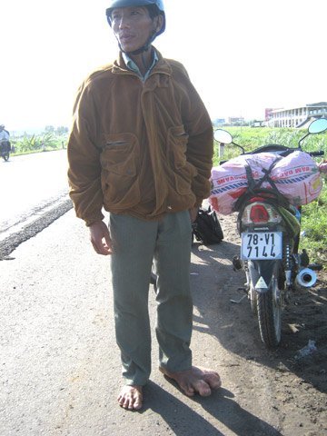 Gần 40 năm qua, hằng ngày anh vất vả nhấc bàn chân nặng như “búa tạ” này.