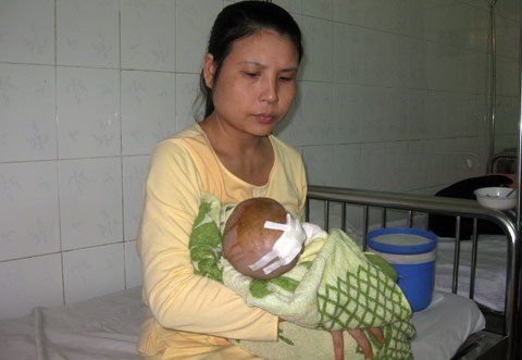 Chiều 30/11, tại Bệnh viện nhi Nghệ An, anh Trần Văn Bình, trú tại khối 3, phường Trung Đô (TP. Vinh, Nghệ An) cho biết sự việc dẫn đến người con trai Trần Tấn Tài (2 tháng tuổi) bị kẻ muốn gây sự với mình xông vào nhà bóp cháu bé bị móp đầu.