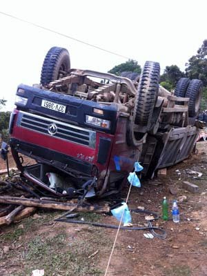 Thông tin ban đầu cho biết, có 15 người ngồi trên xe gỗ khi bị lật, có ít nhất 10 người chết và 5 người bị thương.