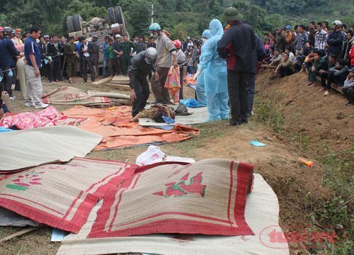 Hàng trăm người dân địa phương đứng vây quanh chiếc xe bị lật ngửa và thi thể bảy nạn nhân bị chết tại chỗ. Thi thoảng những tiếng khóc nhói lên giữa hàng trăm người đứng, ngồi xung quanh hiện trường.
