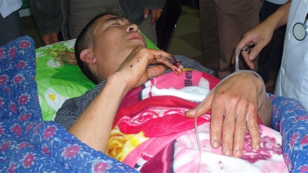 Lúc 1h chiều nay, hai nạn nhân Nguyễn Văn Thìn (tên thường gọi là Cường) và Vy Văn Thích, trú tại xã Châu Lý (Qùi Hợp) được chuyển đến BV Đa khoa Nghệ An cấp cứu (Ảnh: Tiền Phong) |