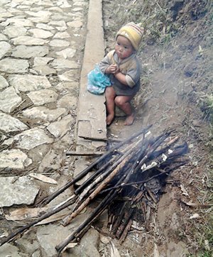 | Nhiệt độ tại Sa Pa giảm còn 1-2 độ trong đợt rét đang diễn ra (Trong ảnh là em bé người H'Mong sống tại bản Cát Cát, thị trấn Sa Pa. Ảnh: N.Anh) |