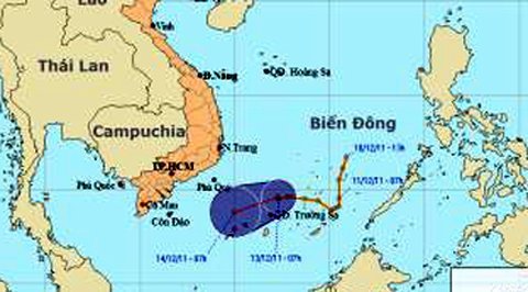 Dự báo trong 24 giờ tới, áp thấp nhiệt đới di chuyển chủ yếu theo hướng Tây Tây Nam, mỗi giờ đi được khoảng 10 km. Đến 07 giờ ngày 14/12, vị trí tâm áp thấp nhiệt đới ở vào khoảng 8,8 độ Vĩ Bắc; 110,0 độ Kinh Đông, trên khu vực phía Tây quần đảo Trường Sa. Sức gió mạnh nhất vùng gần tâm áp thấp nhiệt đới mạnh cấp 6, cấp 7 (tức là từ 39 đến 61km một giờ), giật cấp 8, cấp 9. |