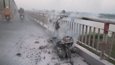 Theo một người đi đường chứng kiến sự việc cho biết: Người phụ nữ đang điều khiển chiếc xe thì được người đi cùng chiều thông báo xe bị cháy ở phần yên, giáp với bình xăng. Ngay lập tức người phụ nữ đưa xe vào thành cầu và kịp chạy ra xa trước khi chiếc xe bốc cháy phừng phừng.
