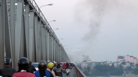 Hàng đoàn xe nhích từng bước một dồn về khu vực cầu Chương Dương khiến vòng xuyến cầu trở thành nút cổ chai. Xe ô tô của CA phường được điều đến để chuyển chiếc xe máy trơ lại khung đi cũng kẹt cứng giữa dòng người và xe đông đúc suốt 1h đồng hồ.