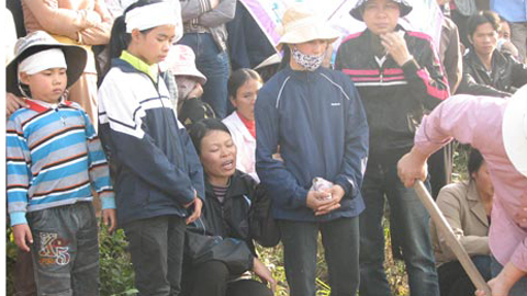 | Hàng trăm người đau đớn đưa cháu Vân về nơi an nghĩ cuối cùng. |