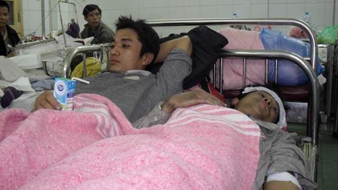 | Công nhân Nguyễn Văn Thịnh và Nguyễn Văn Thực – nạn nhân của vụ cháy đã “hoàn hồn” điều trị tại khoa Bỏng (Bệnh viện Xanh-pôn). |