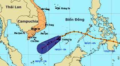 Hồi 13 giờ (19/12), vị trí tâm áp