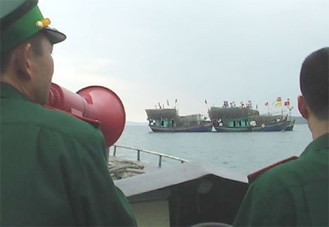 | Lực lượng bộ đội biên phòng Quảng Ninh thông báo cho tàu thuyền biết vị trí, diễn biến cơn bão (Ảnh minh họa: Báo Quảng Ninh) |