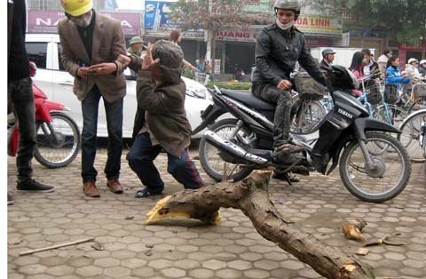 đứng xem xung quanh hiện trường tỏ ra bất bình vì cây phượng tạo bóng mát, bỗng