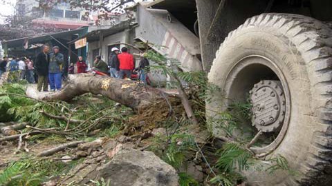 đang đứng xem chiếc cần cẩu húc đổ một cây phượng trên vỉa hè của TP. Vinh chết